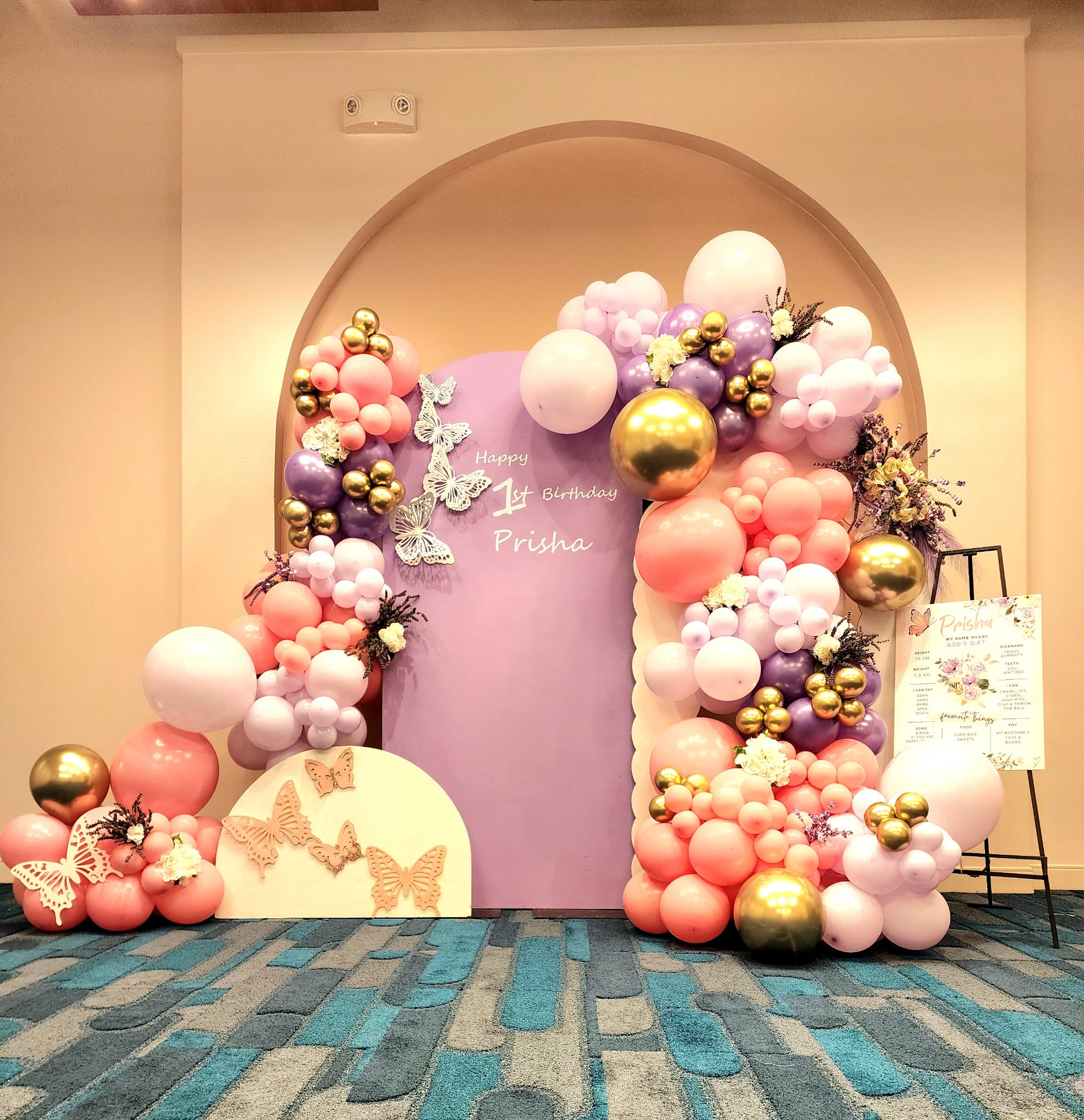 A Chiara Wall is a stylish semi-circular backdrop that enhances any event’s décor. It can be customized with balloons, flowers, vinyl lettering, or lights.